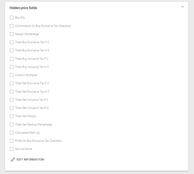This feature enables operators to select which price fields to hide in Product Prices and Arrangement Prices.