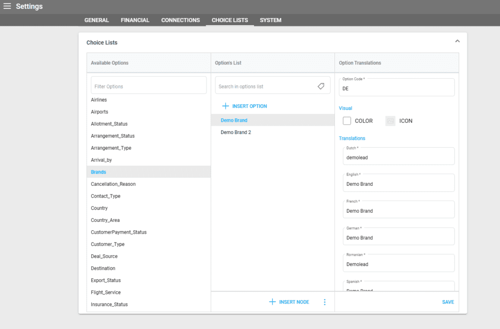 - First, create the brand in Settings/Choice List/Brands:
