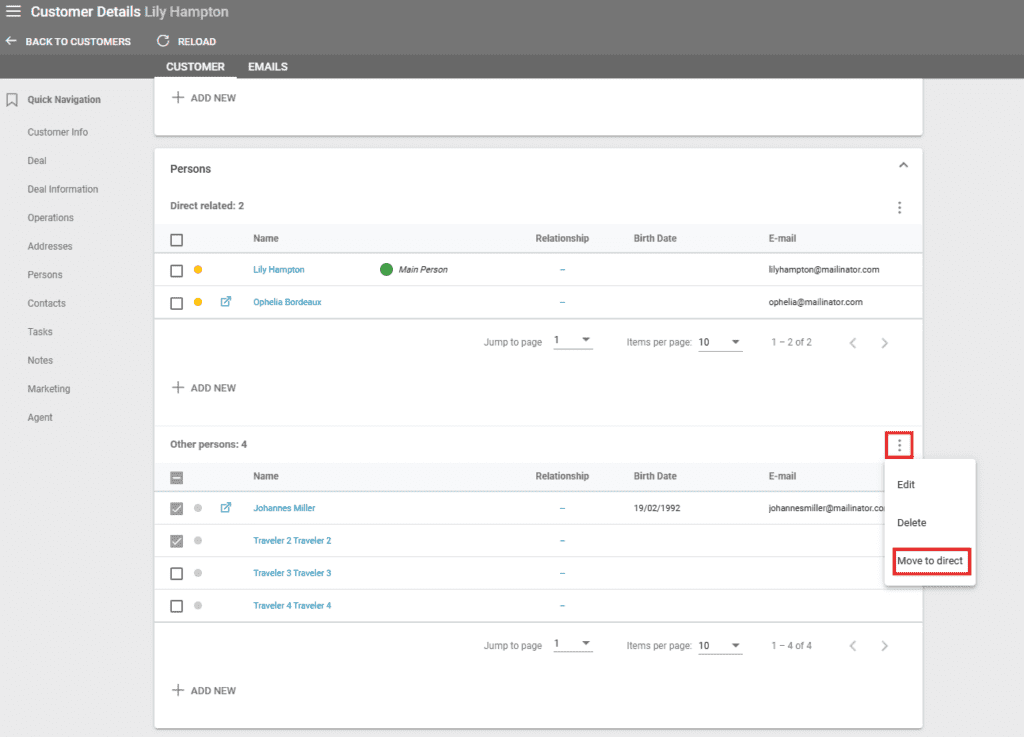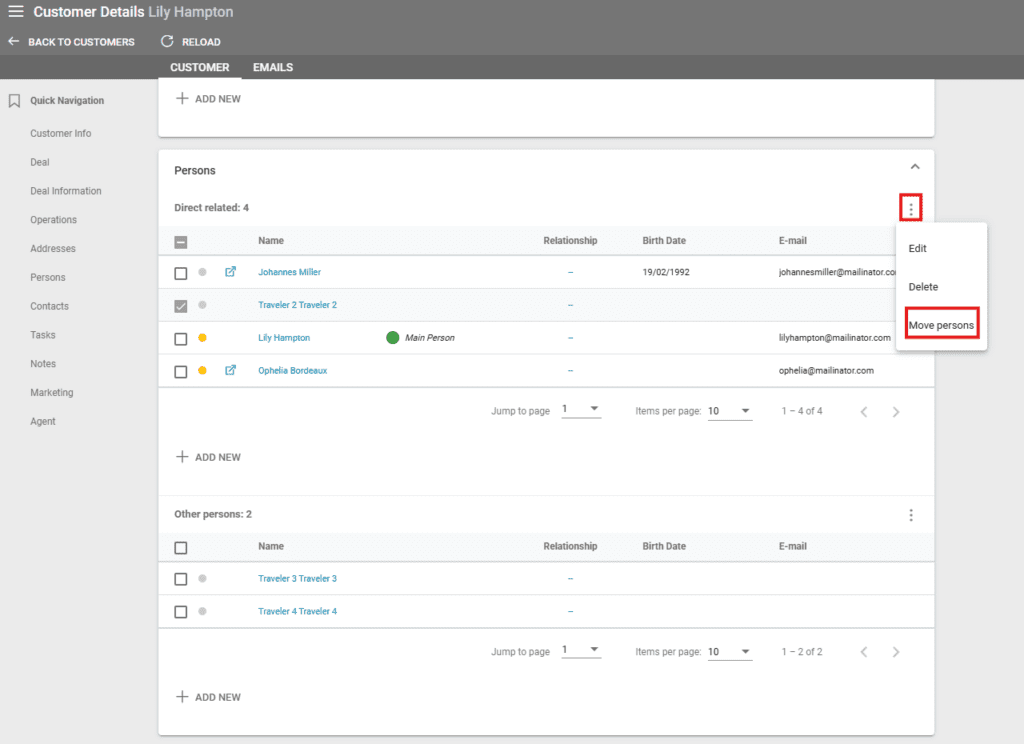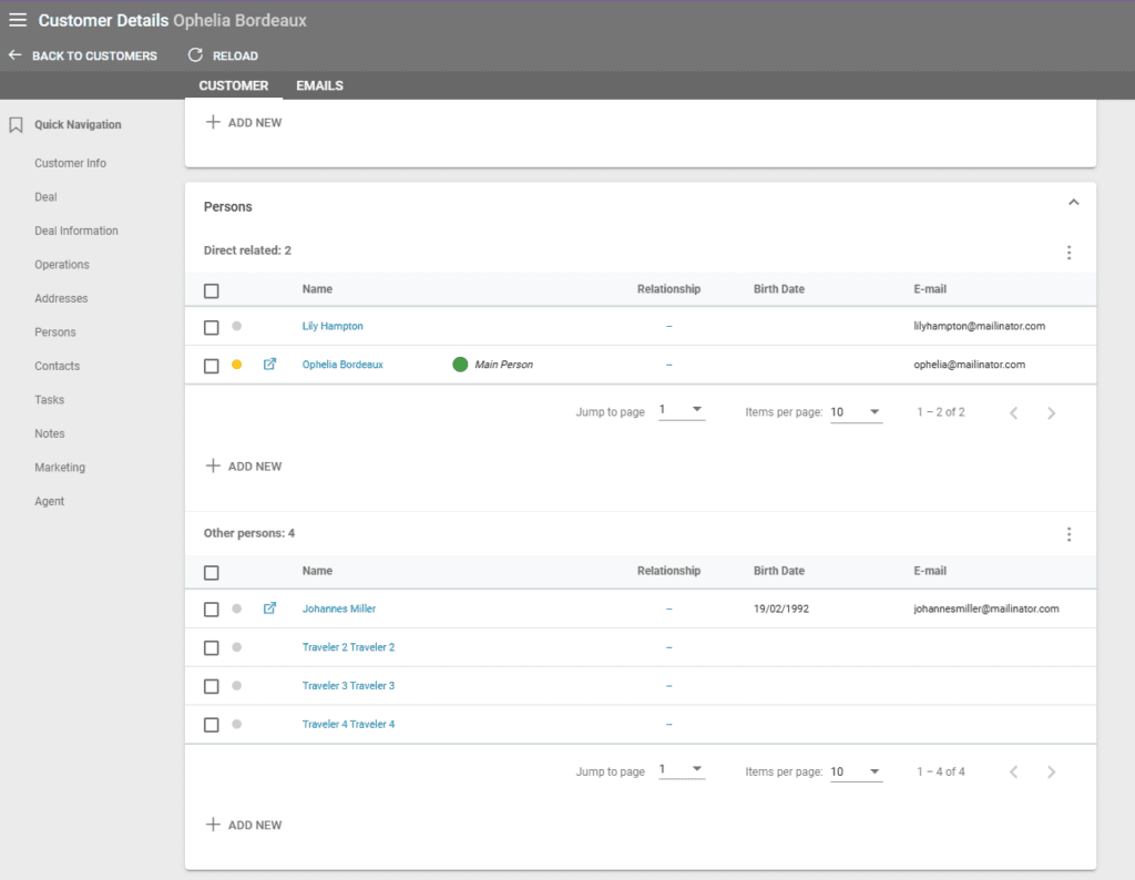 Other Persons (Travelers) – is a person who is related to many customers. These persons are not shown when loading the customer in a deal.