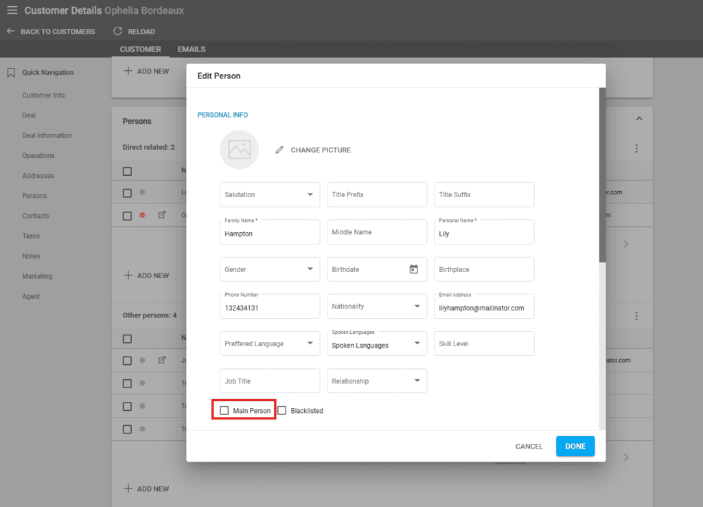 Customers – Changing Main Person of a Customer
