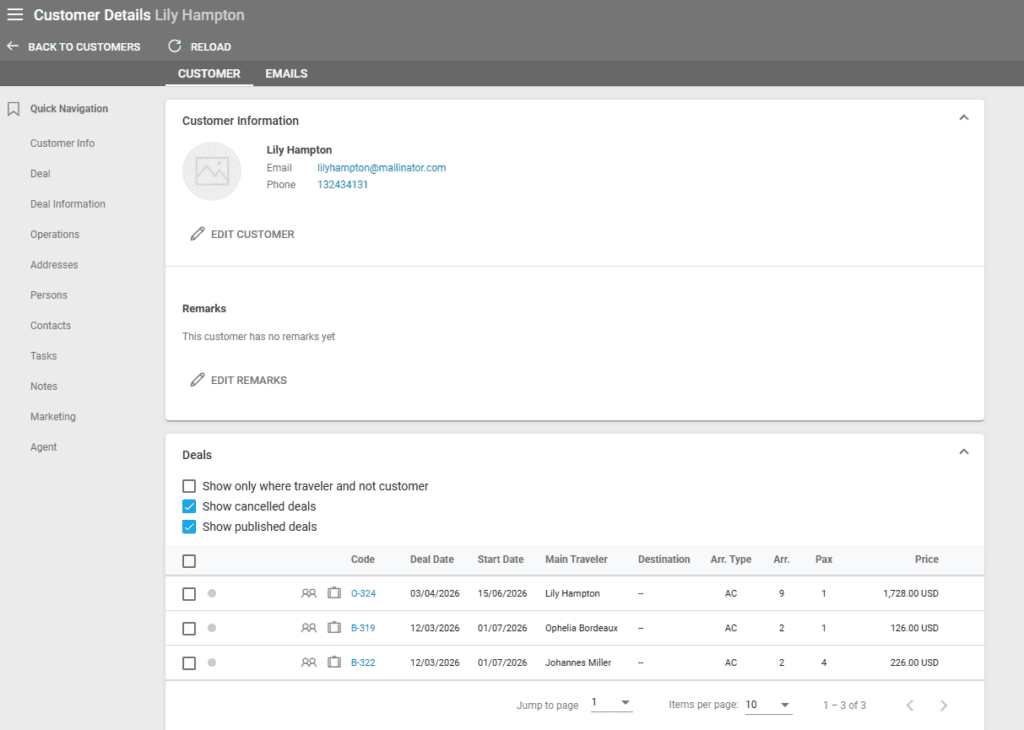 Customer – is any person who is the main traveler or a traveler in a deal.