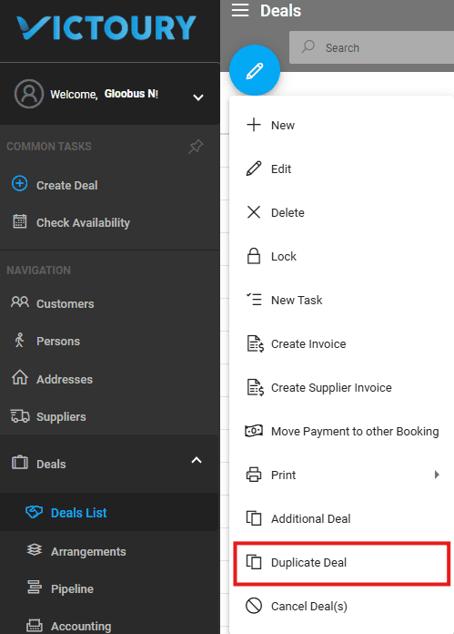 The Customers and Travelers of a deal can be changed in Victoury. This feature is particularly useful for instances where a Deal is duplicated to be sold to a different customer.