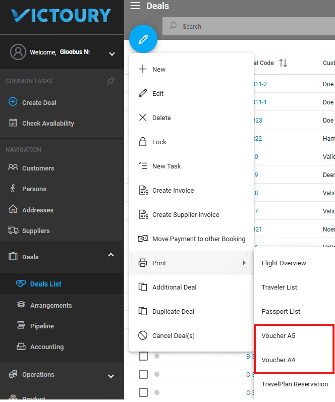 After a deal has been created, you have the option to print a voucher for it. The voucher displays information about products that have the option “Create Voucher” selected on the product level.
