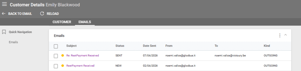 A complete email integration is available in Victoury that allows operators to import and send emails. For more information on these subjects, please check the following articles: