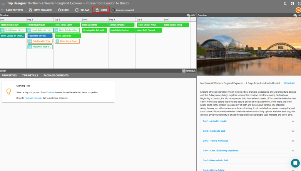 Once a Trip is locked, no changes can be made in the Trip Designer.