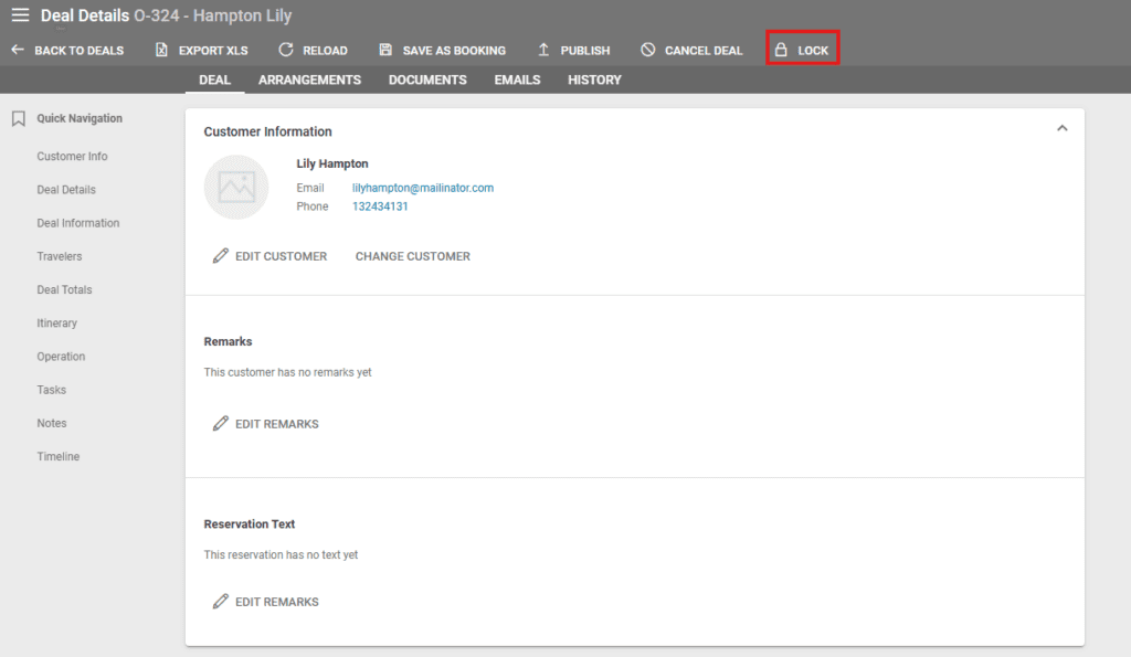 A deal can be locked manually using the Lock button, thus disabling edits to the deal.