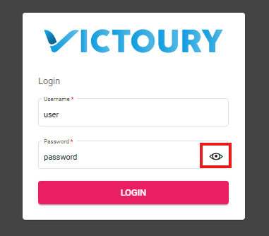 On the login screen, the password field can be toggled on/off by clicking on the Eye icon at the end of the field.