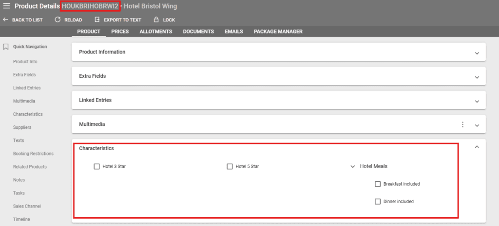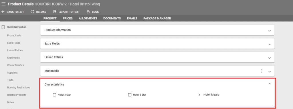 Product Characteristics can be set on the Product level to describe products. These may be displayed on websites as well.