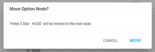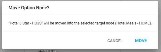 - Moved to a different node – after which the respective node can be selected; a confirmation window is displayed with the option that will be moved and the selected node
