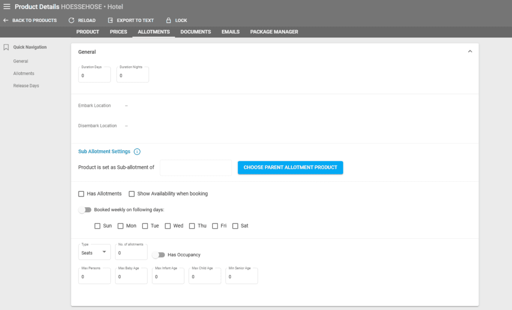 Products – Creating and Editing Allotments (Booking Availability)
