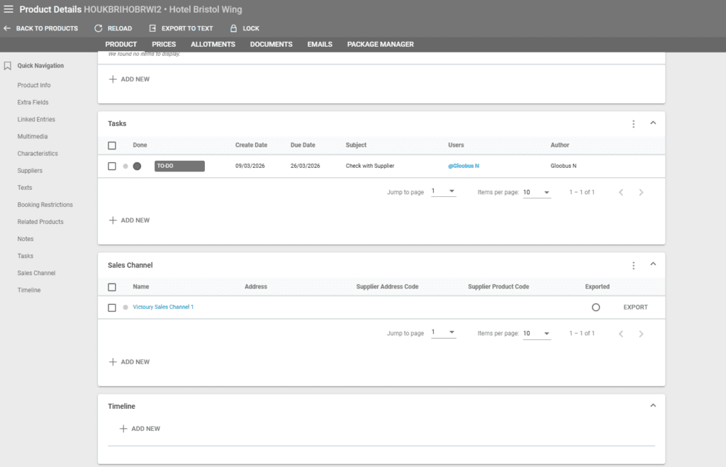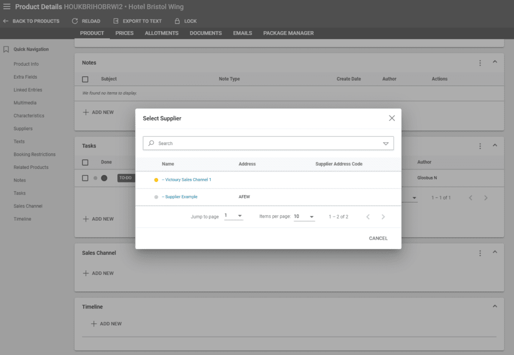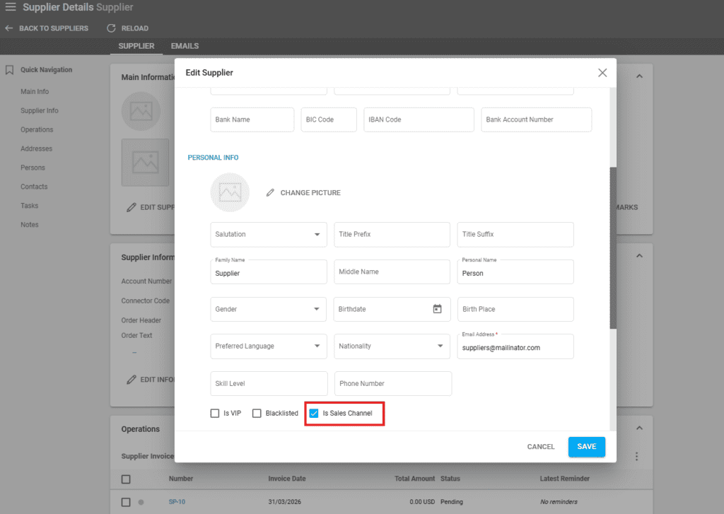 Since Victoury2 is the environment that will receive products exported from Victoury1, in the Victoury1 environment, you must create a supplier representing the Victoury2 environment and check ‘Is Sales Channel’ in Supplier Information. The following setting needs to be set to TRUE for the receiving environment: