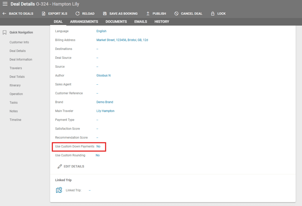 The Balance Due In Days is also set to 3 in this example, calculated from the travel date rather than the Deal date. If the travel date for this deal is the 18th of July, 2018, the remainder of the payment is due 3 days before, on the 15th of July, 2018.