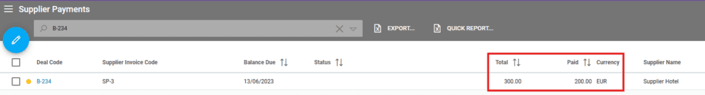 All registered supplier payments can be viewed in the main left menu under Deals / Accounting if you search by Type = Supplier Payment (SP).